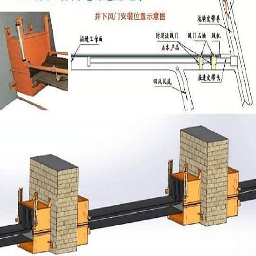 礦用防逆流風門裝置的擋風板有手動控制和遠程智能電控氣動控制兩種模式;擋風板有沿滑道上下垂直升降和沿旋轉(zhuǎn)軸旋轉(zhuǎn)到90度以便皮帶穿過輸送煤炭。垂直升降擋風板的礦用氣動防逆流裝置要合理設計氣缸的運行速度,防止礦用防逆流風門的擋風板兩邊不同步造成卡頓。
