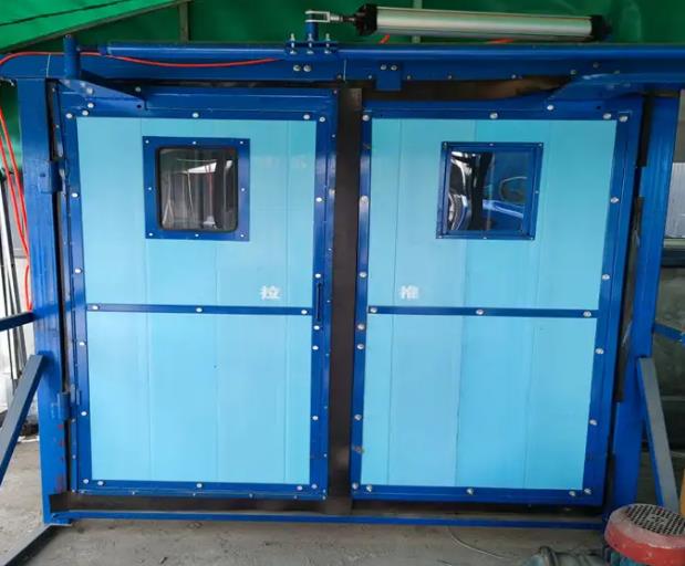 山東潤煤礦山設(shè)備生產(chǎn)廠家先將門扇龍骨焊接好,然后將拼接完成的聚氯乙烯防火板放入框架內(nèi),用鉆好孔的扁鐵覆蓋在聚氯乙烯板四周,然后用8.8級加強(qiáng)螺絲把聚氯乙烯防火板夾在固定板中間,完成以上工作后具有阻燃抗靜電功能的高分子復(fù)合材料風(fēng)門基本完成了。